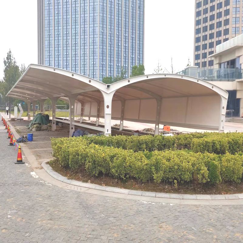 地理环境:如果停车棚位于沿海地区,空气中的盐分高,腐蚀性强,会加速膜材和钢结构的腐蚀。这种环境下,膜材的使用寿命可能会比内陆地区减少 2 - 5 年。而在工业污染严重的区域,空气中的化学污染物、粉尘等会附着在膜材表面,侵蚀膜材,降低其使用寿命。